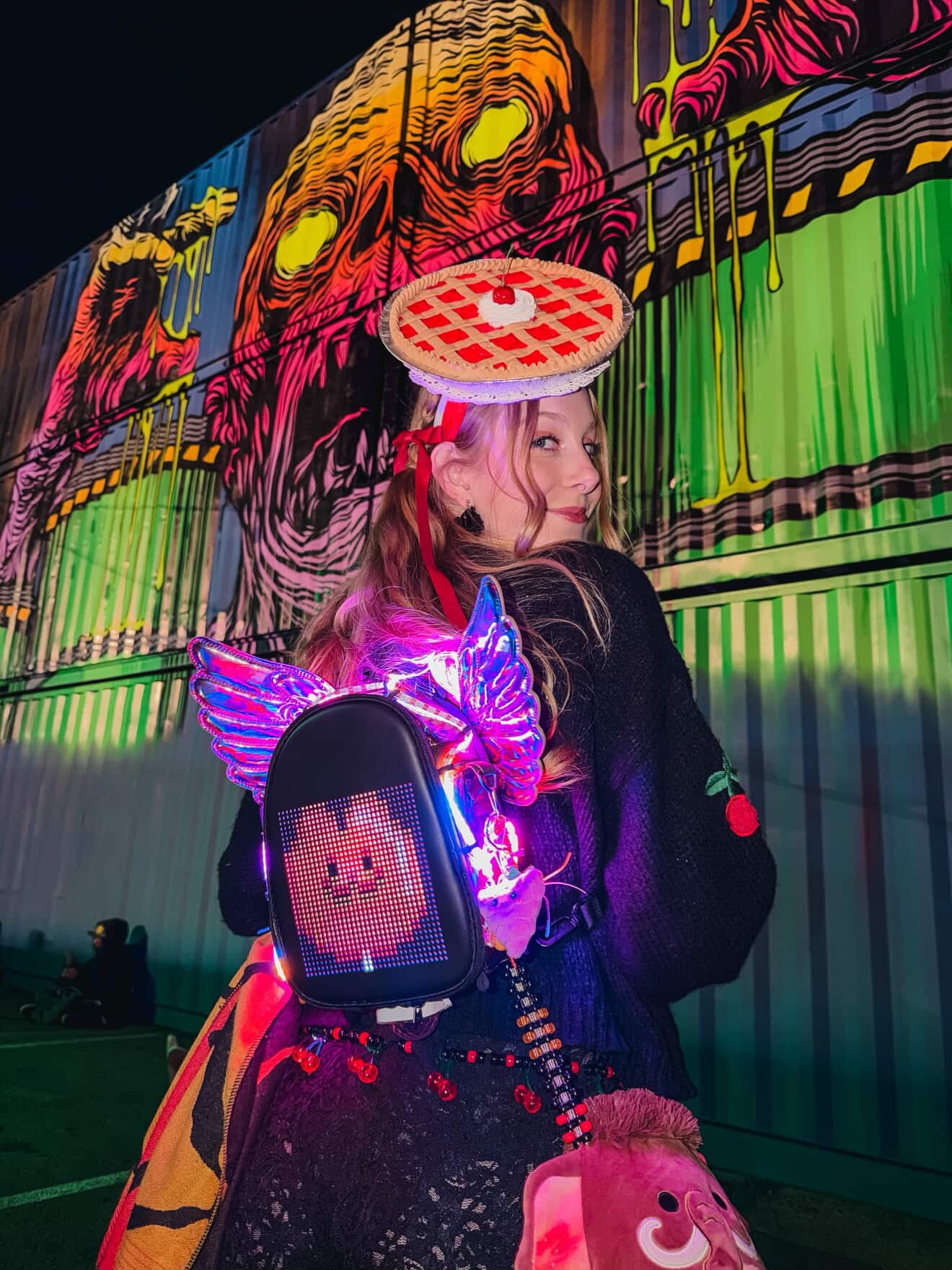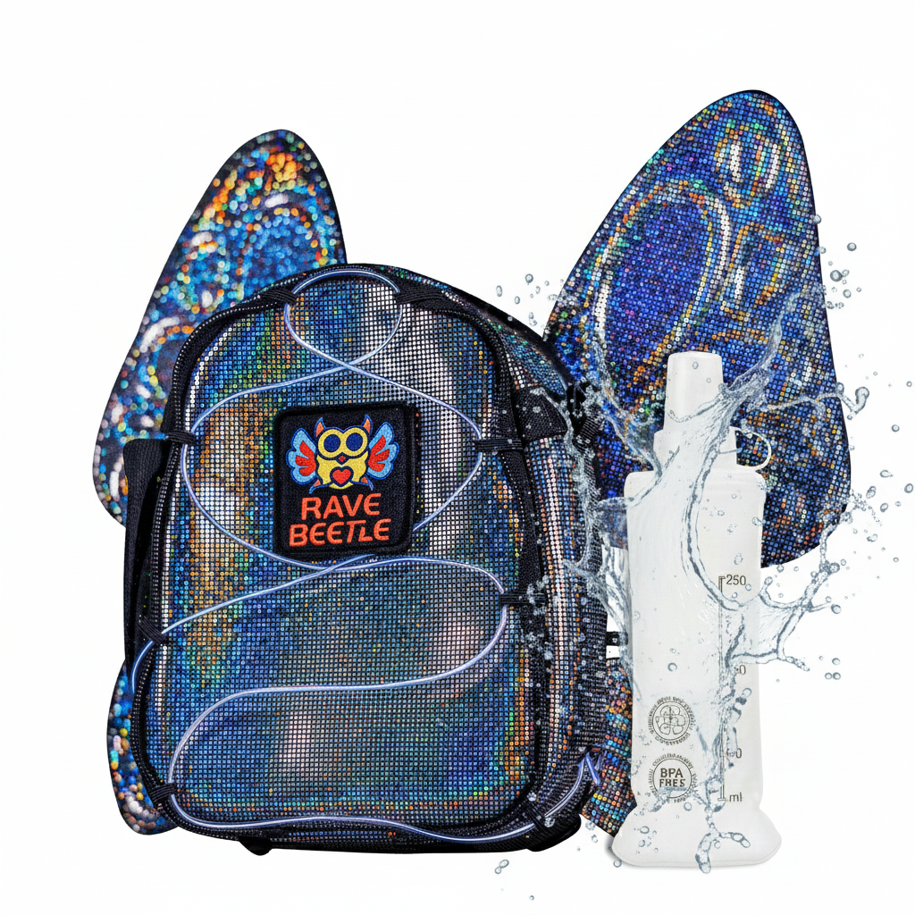 Love the way it reflects light so much!!! It held so many our rave essentials at lost lands and having to refill on water was so easy! 💖 The amount of space and organization it has is incredible! Highly recommend getting especially if you’re an over-packer like me 😂💖