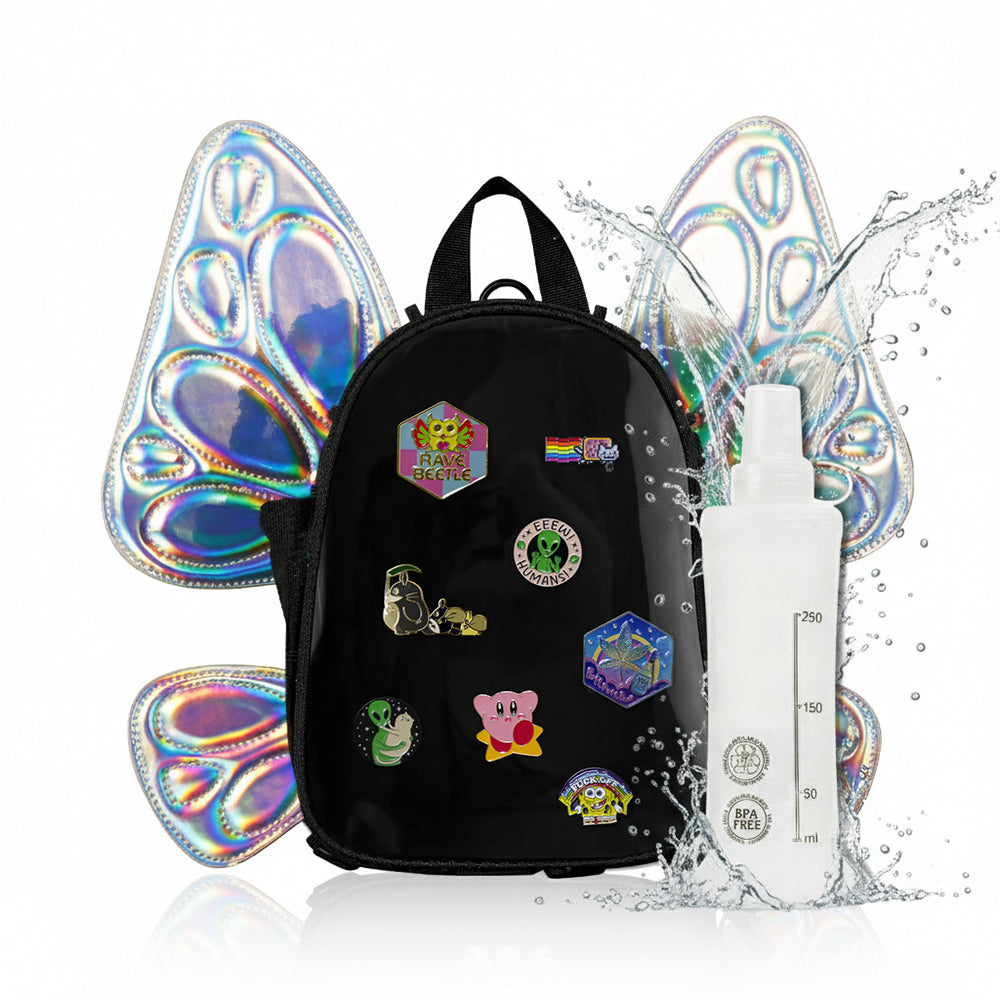 My DREAM festival backpack !!! It is the perfect size for a rave girly who needs to bring a couple of things with her to the festival. I have always struggled with my bags being too small or too big and this one is perfect! Lots of storage options and I never have to worry about my items being stolen throughout the night. Not to mention how cute the flowt backpack is!! So obsessed with the color options and swappable wings, I can’t wait to keep using this bag at all my events!